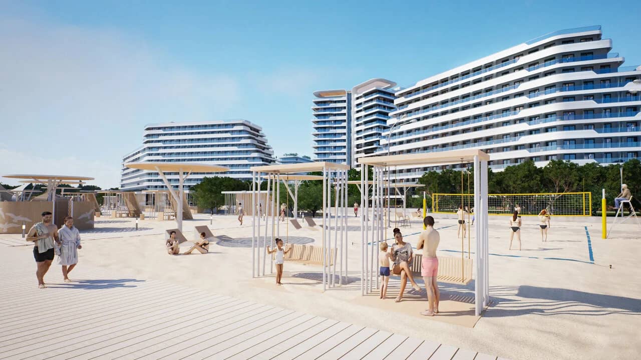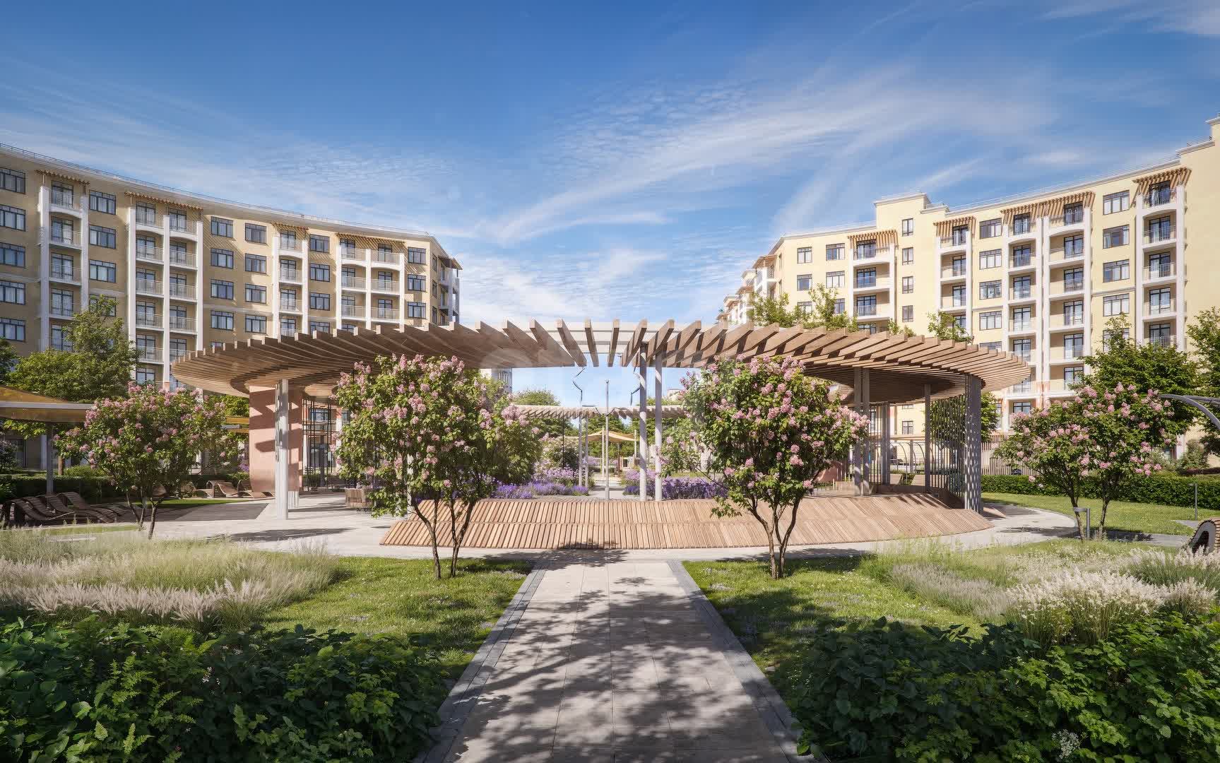Закрытая благоустроенная охраняемая территория с прогулочным променадом, фонтанами, амфитеатром, зонами для отдыха, гриль-домиками и велодорожками, концепция "город в городе", парк-сад с бассейном, ресторанный дворик, детские и спортивные площадки, консьерж-сервис 24/7, разнообразная коммерция на территории - всё для Вашего комфортного отдыха и проживания на курорте, а также получения достойного инвестиционного дохода.